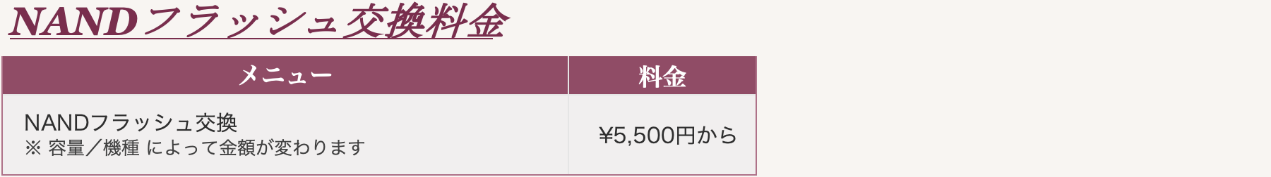 「CPU移植」と「NANDフラッシュ交換」は下部表のオプション料金が必要です。